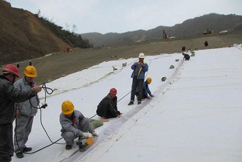 復合土工膜(復合防滲膜)分為一布一膜和兩布一膜,寬幅4-6m,重量為200—1500g/平方米,抗拉、抗撕裂、頂破等物理力學性能指標高,產品具有強度高,延伸性能較好,變形模量大,耐酸堿、抗腐蝕,耐老化,防滲性能好等特點。能滿足水利、市政、建筑、交通,地鐵、隧道、工程建設中的防滲,隔離,補強,防裂加固等土木工程需要。由于其選用高分子材料且生產工藝中添加了防老化劑,故可在非常規溫度環境中使用。常用于堤壩、排水溝渠的防滲處理,以及廢料場的防污處理。